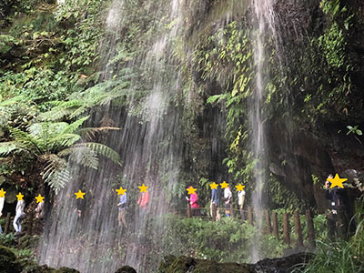 1日目: 羽田空港から飛行機で約1時間、八丈島へ到着。 実は、天候が悪く羽田空港へ引き返す可能性もありましたが、何とか無事に八丈島に到着! 到着後は、八丈島のバスガイドさん同行で、島内観光へ。 南原千畳敷、陣屋跡・玉石垣などの観光ポイントを貸切バスで巡りました。 八丈植物公園では、写真を使ったチーム対抗の「フォトラリー大会」で、チームごとに植物園の中を散策し、ミッションクリアを目指しました! 昼食後、マイナスイオンと亜熱帯を感じる、裏見ヶ滝で森のお散歩へ。その後は、八丈ブルーの太平洋が一望できる足湯、きらめきの湯へ。 ホテル到着後も、皆さんでの夕食&懇親会で、この日に出会ったと思えないぐらい、皆さん打ち解けていました! 2日目: 朝から八丈富士トレッキングに向け出発! 八丈富士でのお鉢巡りはできたものの、頂上はガスが掛かっていましたが、トレッキング中は今年行った山登りの話や、アウトドアの話題で盛り上がっていました!共通の趣味がある仲間同士なので、会話も弾み「次は一緒に~山へいきましょう!」など山トモの輪もひろがっていたようです。 下山後、昼食のお弁当は見晴らしの良いふれあい牧場にて頂きました。そして2日目の最後には、どきどきの「カップル発表」をし、今回は2組のカップルが成立しました!ツアー参加者皆さんでお祝いするような温かな雰囲気だったのが印象的でした! |