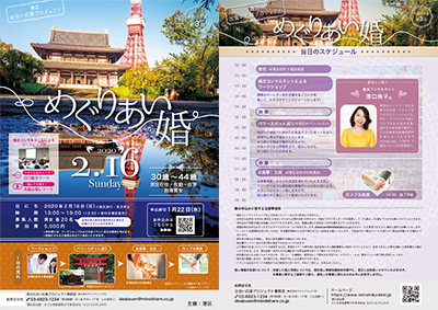 | 行事等に係る問合せ先 | 港区 出会い応援プロジェクト事務局(株式会社マインドシェア内) 電話:03-6823-1234 Mail : deaiouen@mindshare.co.jp |