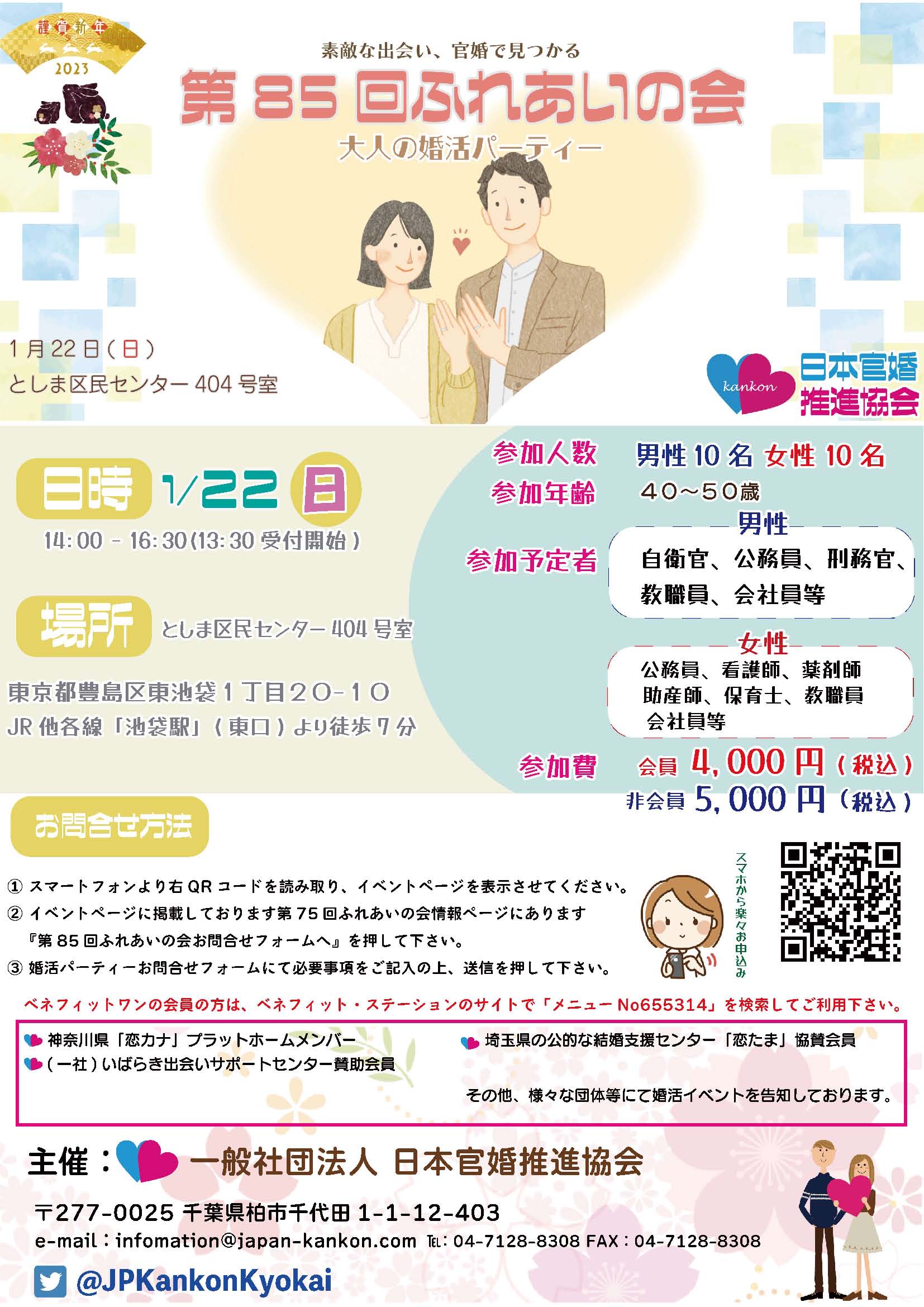 | 参加料金 | 男性:5000円(会員4000円) | 女性:5000円(会員4000円) | |