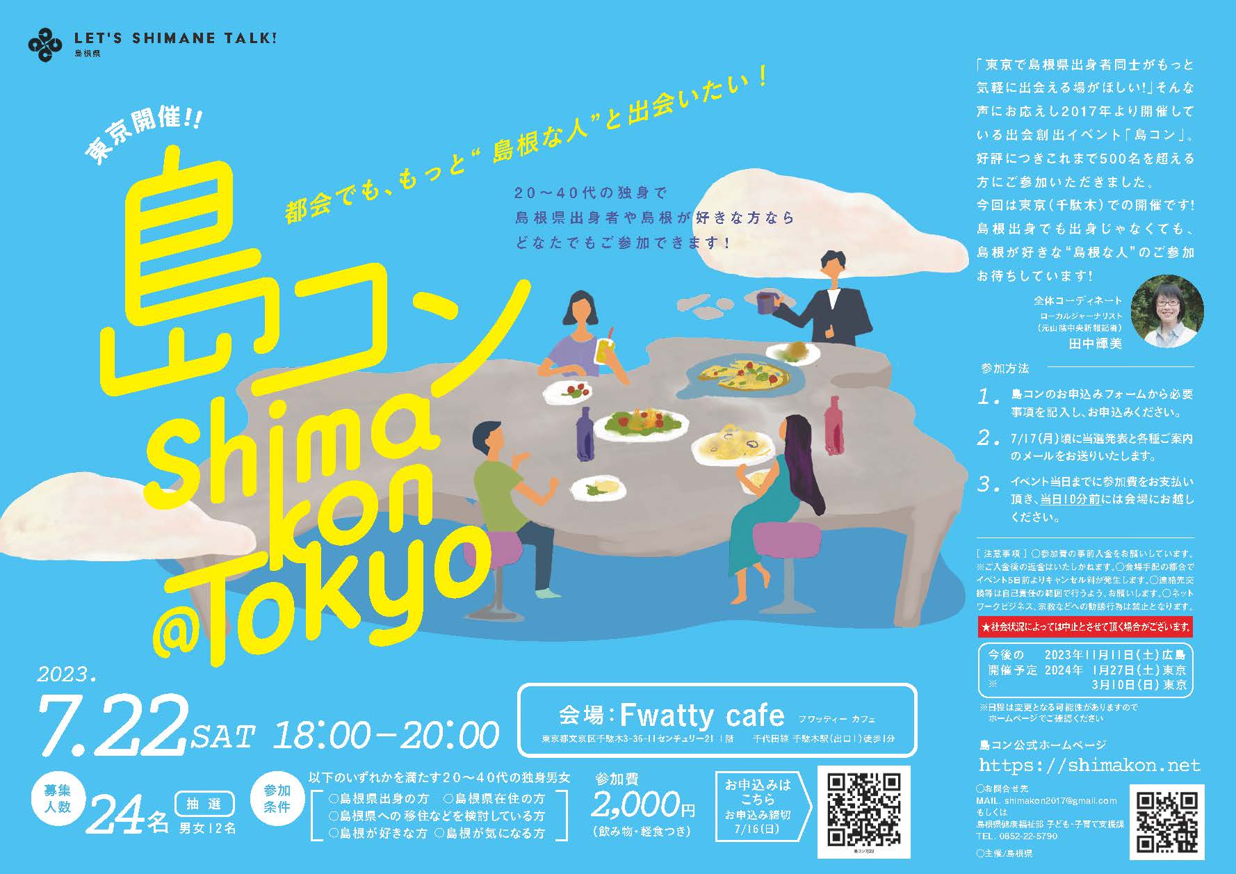 | 開催の趣旨・目的 | 首都圏等在住者(島根県出身者、島根への移住に興味のある方、島根にご縁のある方)を対象とした結婚・UIターンの支援・機運の醸成 | ||