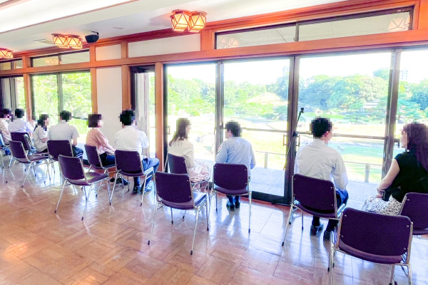 ① 1対1のトークタイム(異性のお相手全員と1対1の着座によるトークタイム) 13年目の開催となる今年の「独婚祭」は、東京都の名勝に指定されている日本庭園「清澄庭園」の園内にある集会施設を会場にカジュアルなガーデンパーティーを開催。 今回のテーマは『結婚につながる出会い』として、定員の2倍を超える申込者の中から結婚意欲のある参加者を選考により確定し、当日は61名にご参加いただきました。 第4部の交流プログラムでは、会場内の窓際に男女ペアでお話がしやすいように「ペア席」をご用意、イベント最後のカップリングでは合計11組のカップルが誕生しました。 (参加者のアンケート結果は当会のホームページにリンク先を公開しています。) |