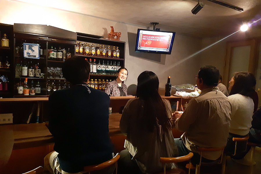 畑の家では、当日コミュニティ農園で収穫した野菜を使用してビーフシチュー、サラダを調理し、歓談しながら食事を行った。その後、スナック水中に移動し、ママのお話を聴きつつドリンクを楽しみながらの交流会を行った。