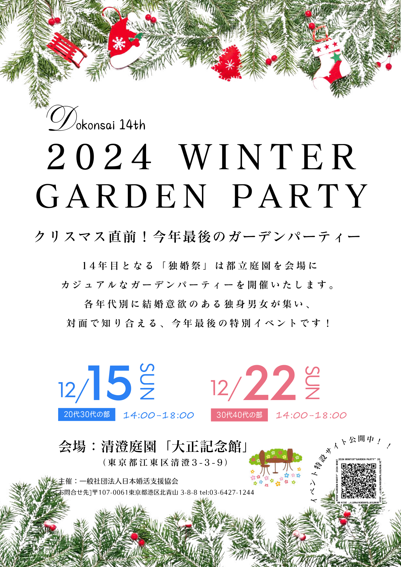 | 行事等に係る問合せ・申込先 | 一般社団法人 日本婚活支援協会:03-6427-1244 | ||