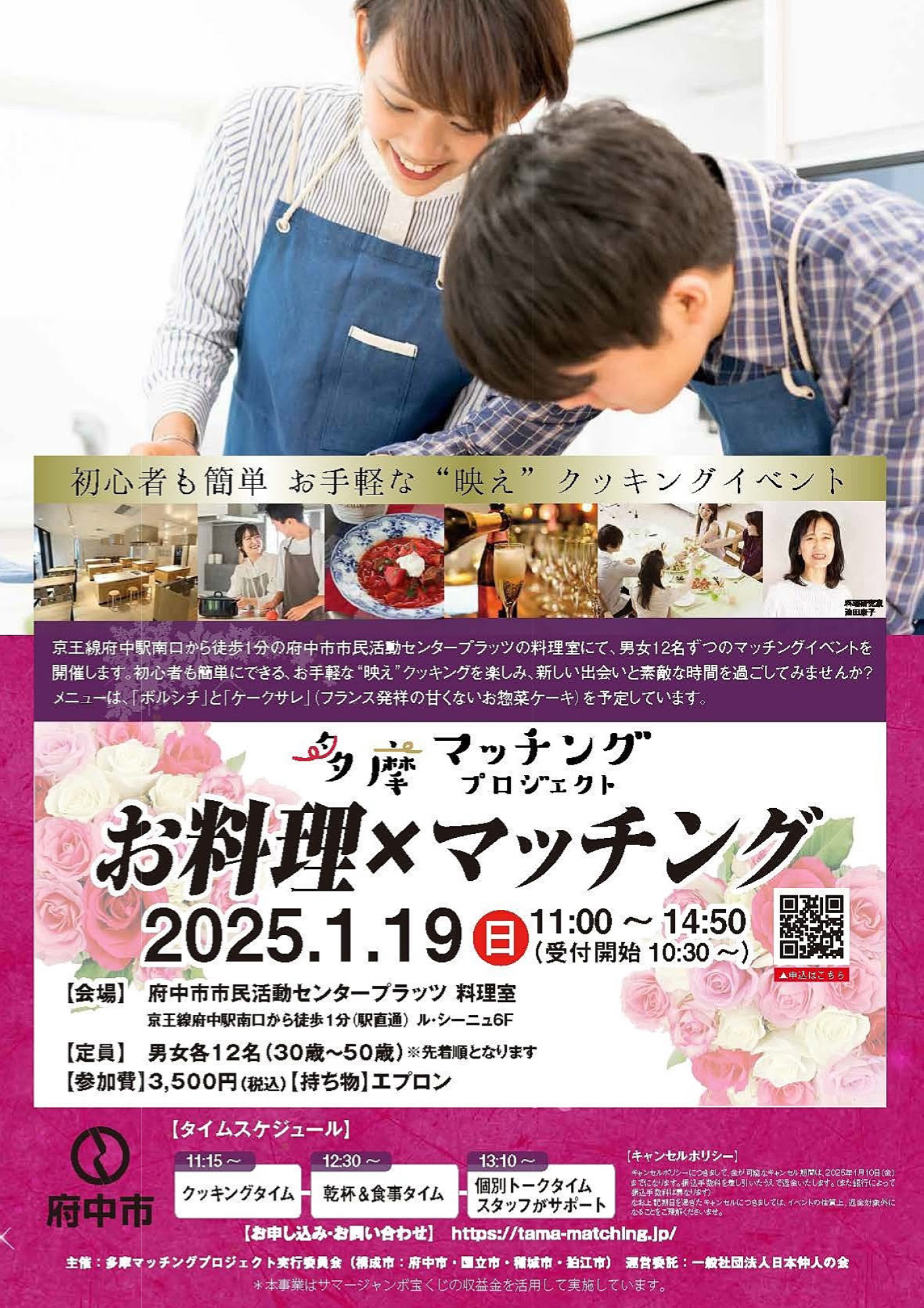 府中市の市民活動センターで、初心者向けクッキングを楽しみながらのマッチングイベントです。当日はボルシチとケークサレを調理予定です。