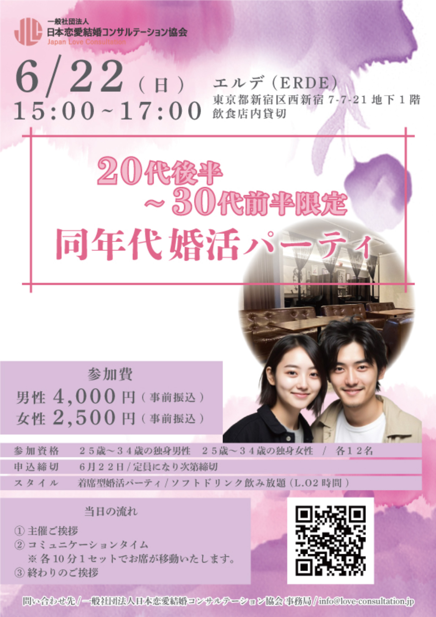 参加料金 男性:4000円 女性:2500円