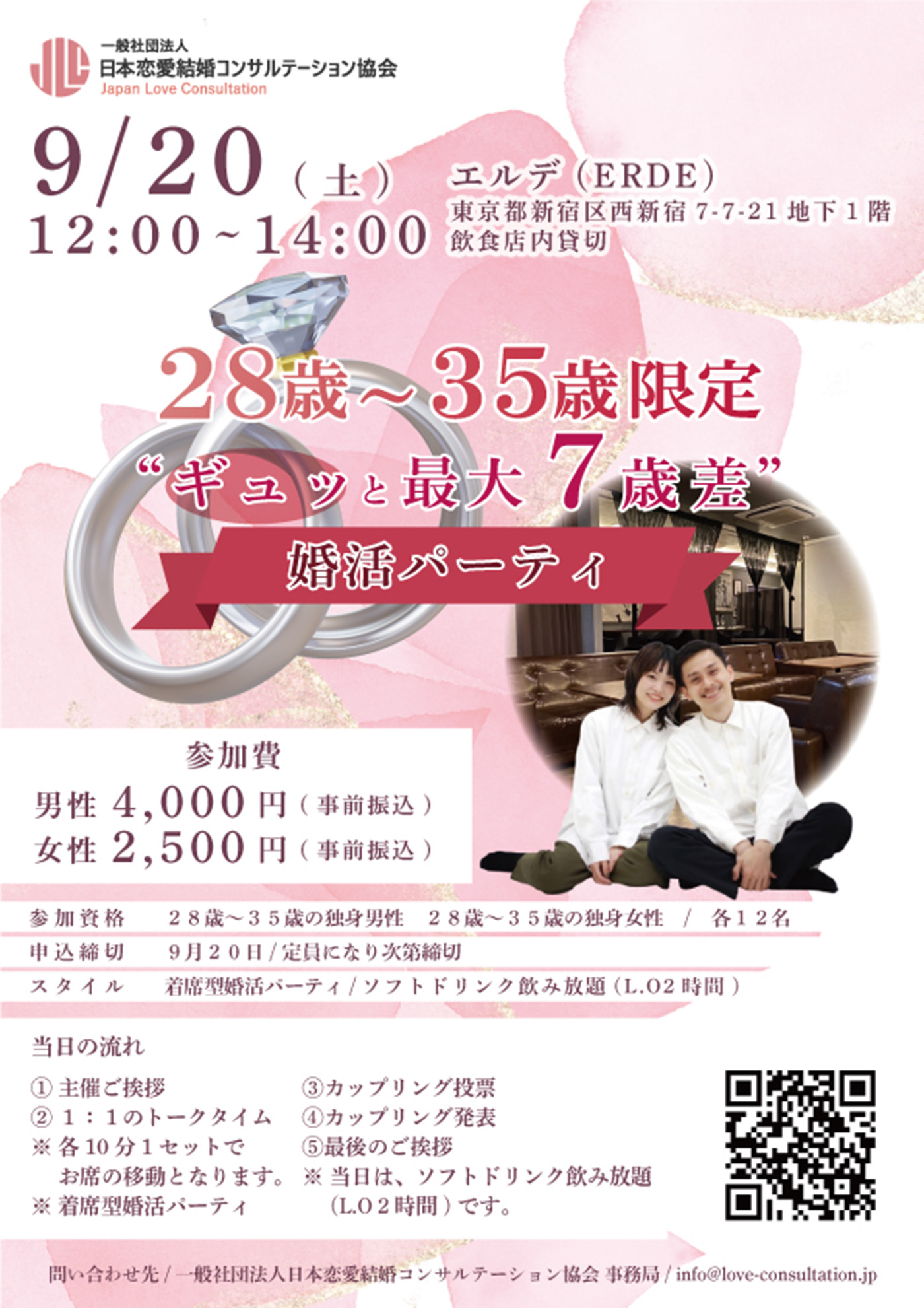 | 主催者 | 一般社団法人日本恋愛結婚コンサルテーション協会 | ||