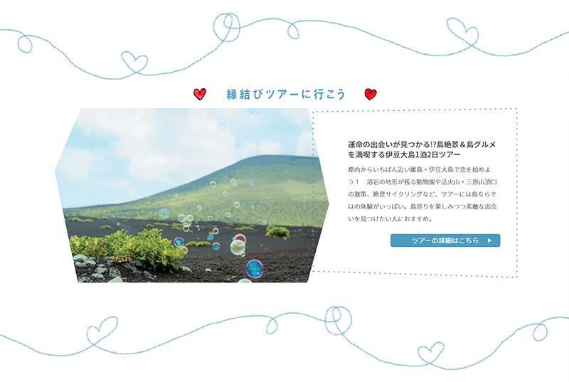 東京都と公益財団法人東京観光財団は、「縁結び」をテーマとして島しょ地域の魅力を紹介するWEBサイトを『オズモール』とタイアップして制作し、島の新たな観光の魅力を発信しています。