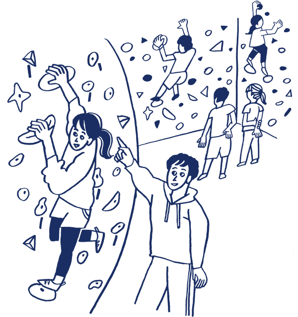 自己紹介が終わったら、インストラクターからボルダリングの注意事項やレクチャーを受け、男性2~3名、女性1~2名のチームに分かれます。男女のチームがシャッフルをしながら1時間半程度、ボルダリング体験タイムに。参加男性の中には経験者もいて、ボルダリングが初めての女性に教えている姿も。