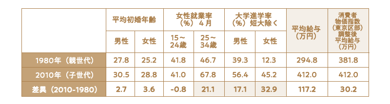 図:1980年と2010年の結婚に関わる社会情勢の変化