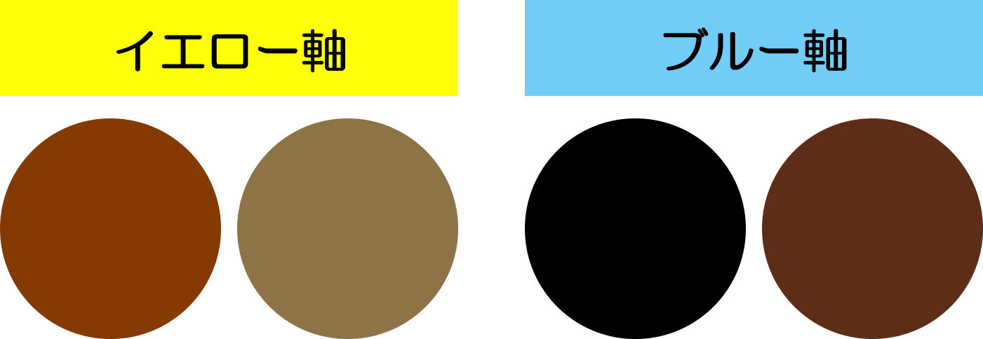 ・瞳の色が、ブラウン~黄みブラウンの場合は「イエロー軸」