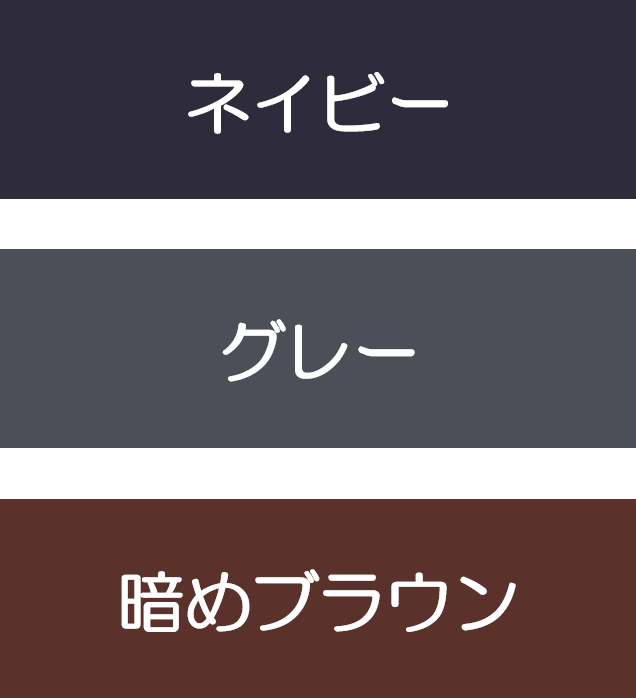 ネイビー、グレー、暗めブラウン(明るすぎず、やや赤みのある色がおすすめ)の3色が味方になります。