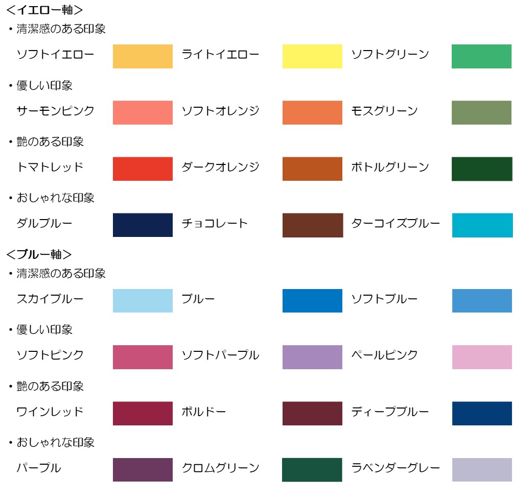 「反対の軸色」は似合わないから不要な色、ではありません。面積を少なくしてコーディネートすることで、「軸色」との相乗効果により、素敵に着こなせる色となります。