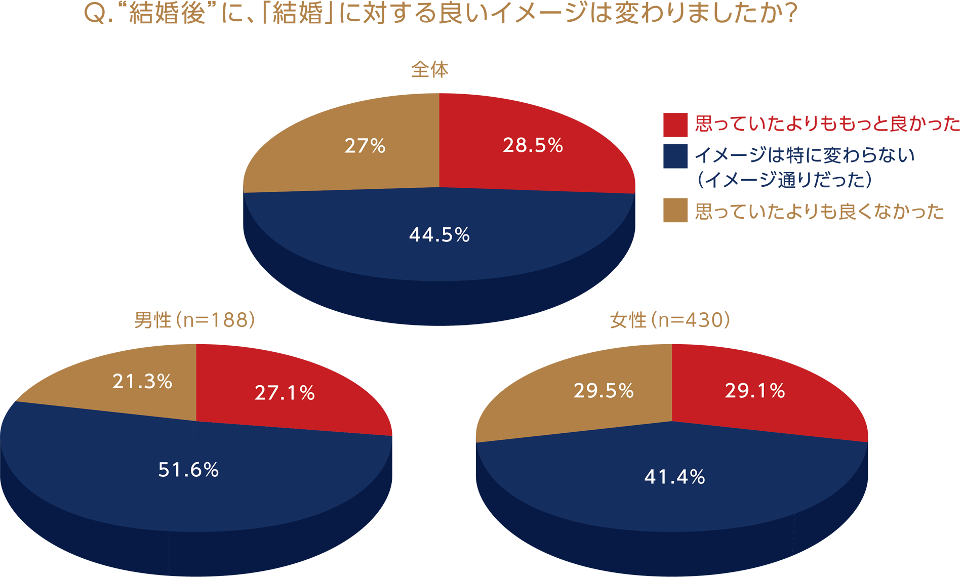 アンケートの回答を見てみると、結婚前の不安はふたりがお互いを尊重し、思いやることで解消され、ふたりだから実現できる新しい暮らしを送っていることが伺えます。それでは、結果について細かく見ていきましょう。