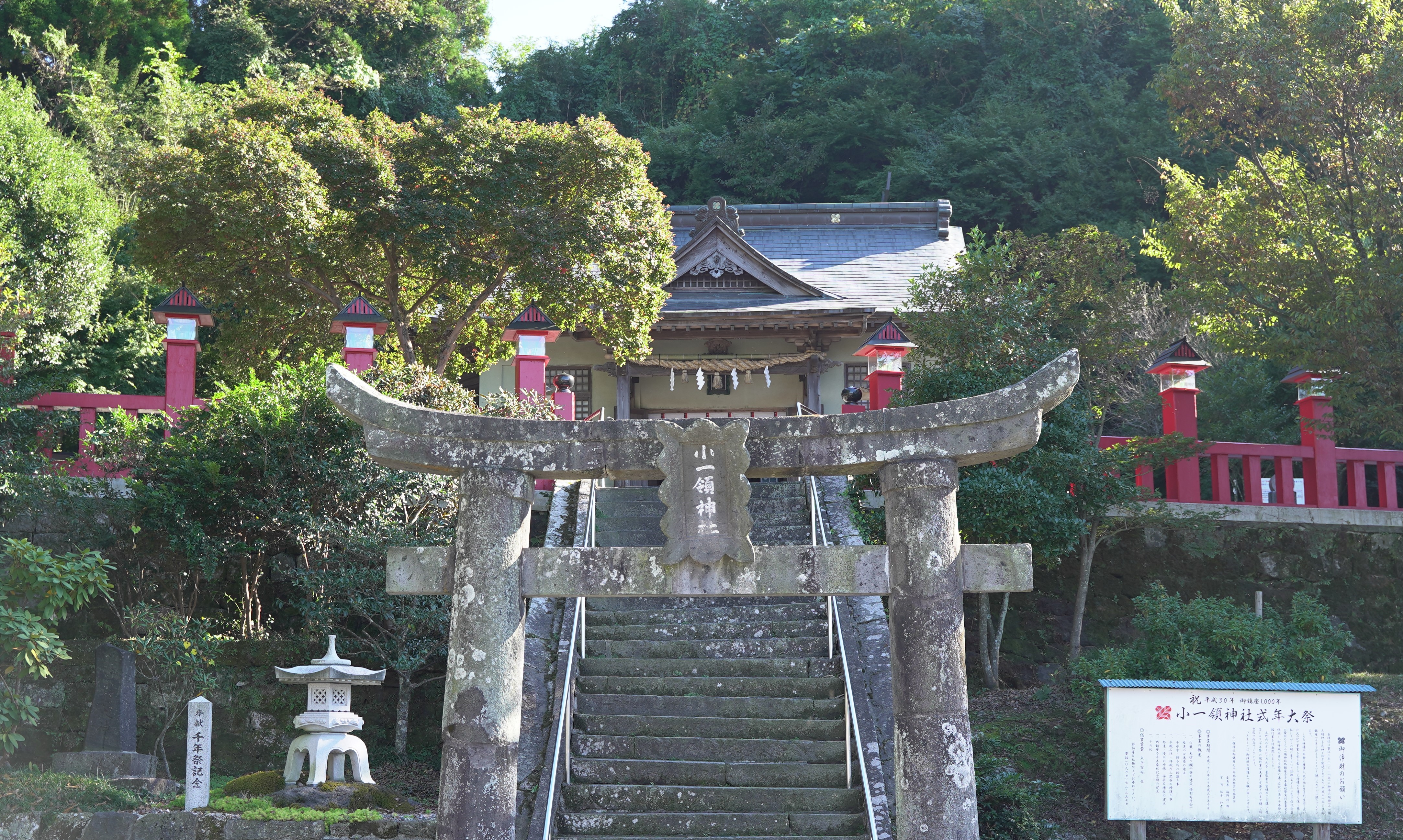 商売繫盛と縁結びの神様として知られている神社です。標高56mの四山の山頂にあり、とても眺めがよく、荒尾市内を一望できます。また、毎年春の2月13日と秋の9月13日には「こくんぞさん祭り」が開催されます。