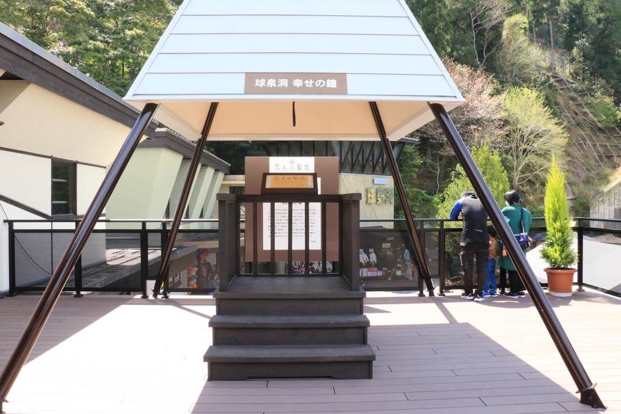 球泉洞内にはハート型の石があり、SNSでちょっとした話題になってます。また併設する隣りの施設2階のテラスには「幸せの鐘」があり、ふたりで鳴らせば幸せが訪れること間違いなしです。
