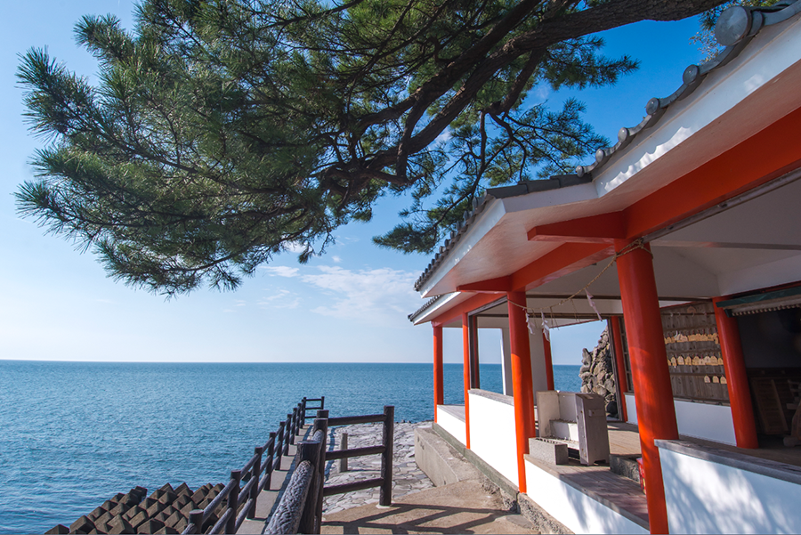 海に突き出た岩窟に社が設けられているという全国的にも珍しい神社です。