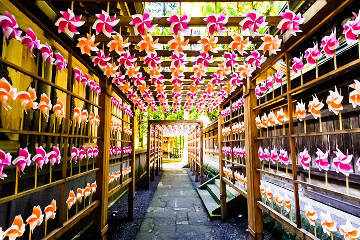 カラフルな風車棚はインスタ映えすること間違いなし!涼を感じられるスポットとなっています。風車がカタカタと回る涼やかな音と色鮮やかな景色で来場者を魅了します。