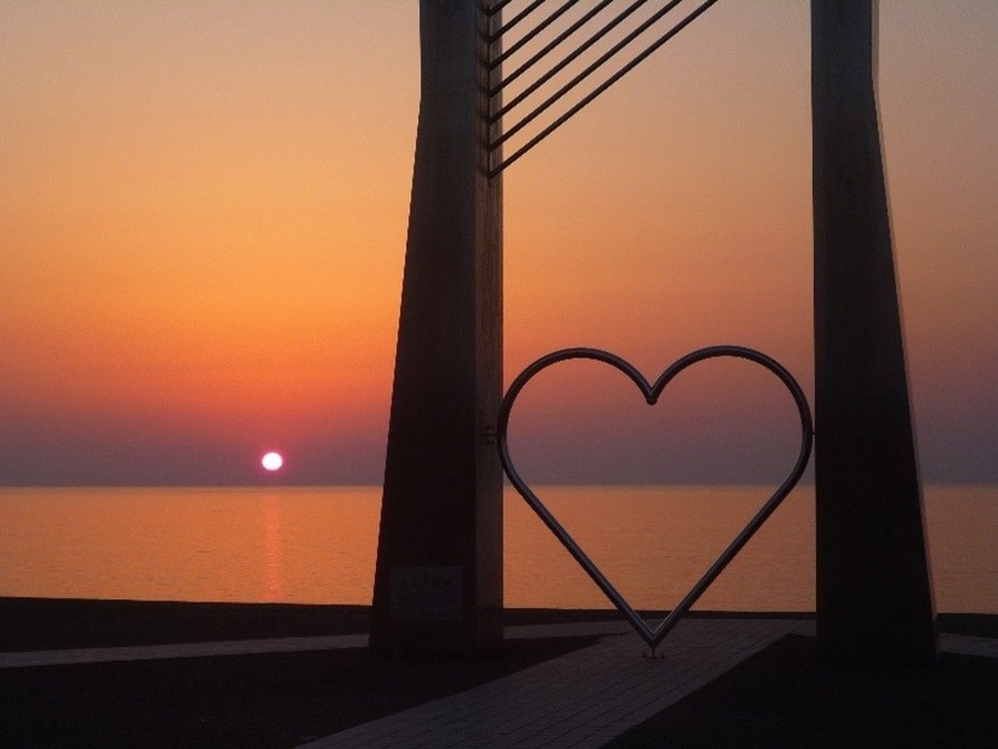 日本海に沈む美しい夕陽を眺められる「恋人の聖地」。