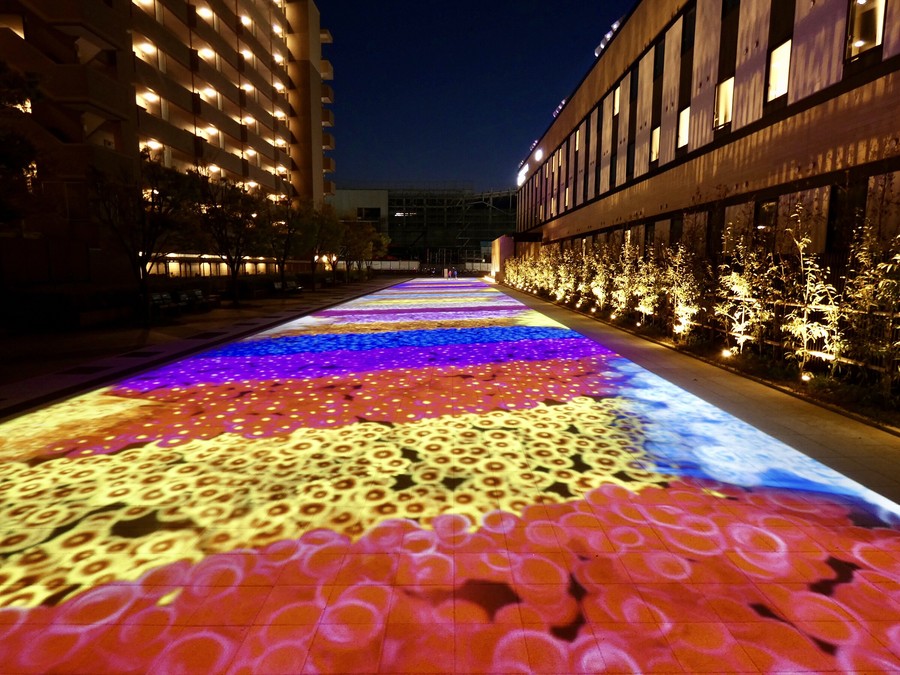 日本海側最大級の常設プロジェクションマッピングが見れる「こまつハチマルスクエア」では、毎日、日没後から21時まで四季折々の色鮮やかな演出が楽しめます。