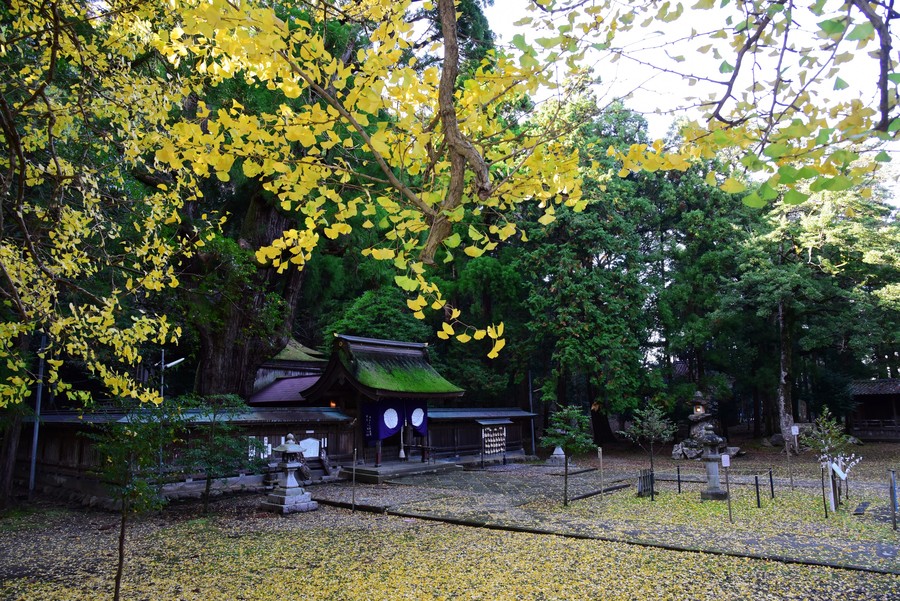 若狭姫神社は、若狭彦神社の下社で、若狭一の宮です。境内には枝を広げて空に伸びる、巨大な千年杉が鎮座しています。
