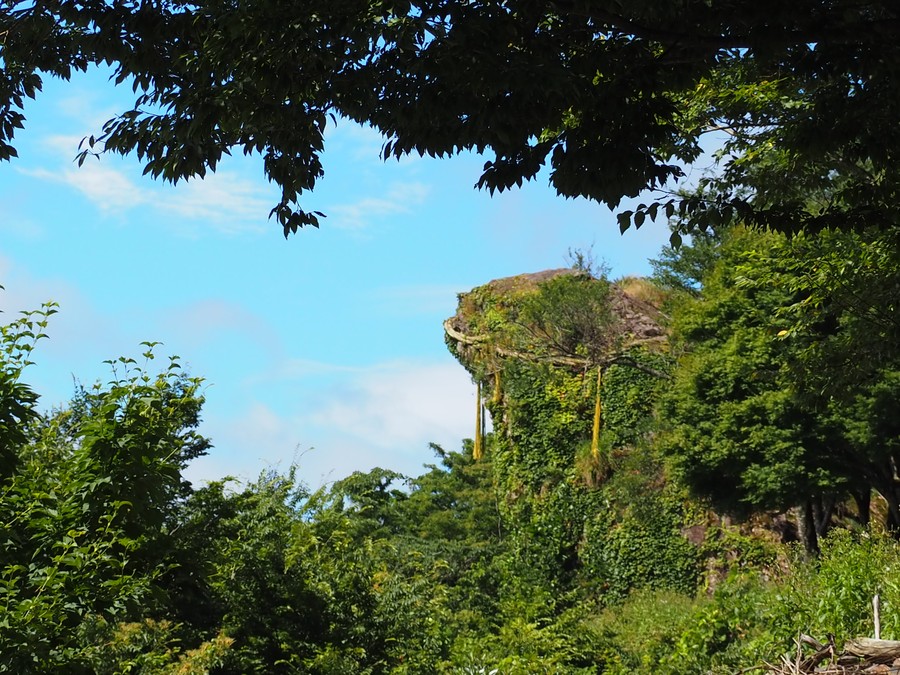 樹齢100年以上の杉とケヤキが根っこで結ばれて、このような形になっているんです。