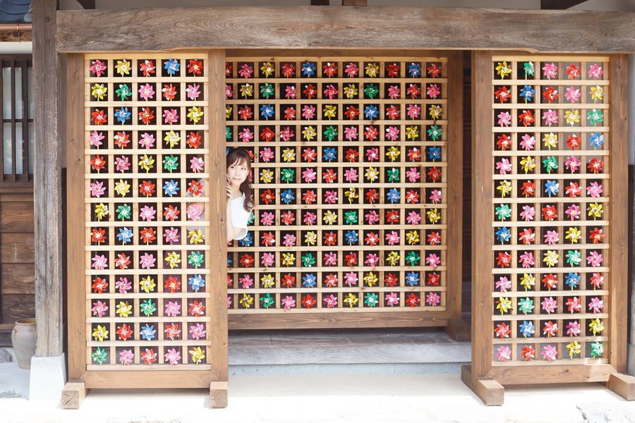 色鮮やかな風車を前に思い出の一枚を撮ってみてはいかが。