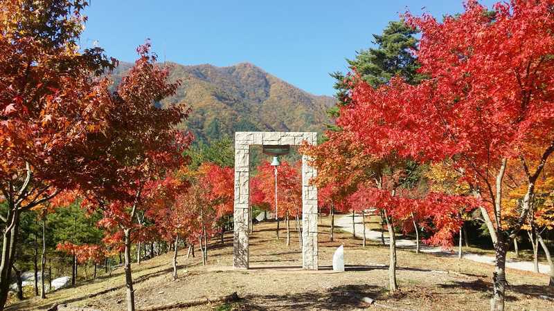 展望台に設置された鐘を鳴らすと、山々に響き渡る鐘の音を楽しむことができます。