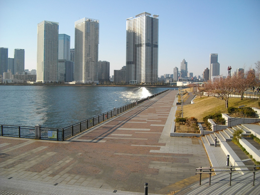 東京港の景観を眺めながら散策したり、隣接する商業施設や江東区立豊洲公園・豊洲ぐるり公園で遊んだりと、様々な過ごし方ができる公園です。開発著しい豊洲エリアの魅力を肌で感じることができます。特に、晴海・月島エリアを望む夜景の美しさは必見です。