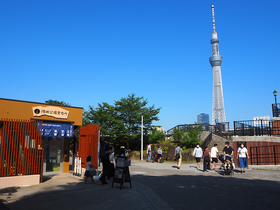 隅田公園案内所は、2020年6月に開通した「すみだリバーウォーク(浅草と東京ミズマチ、東京スカイツリーを結ぶ歩道橋)のたもとに位置しています。すみだリバーウォークには「恋人の聖地」が2か所あり、写真撮影等おふたりの思い出になること間違いなしです。