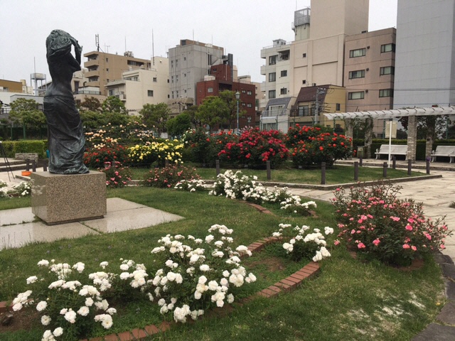 遊び回って疲れた時は、こちらの公苑で休憩してみてはいかがでしょう?給水所の上にあるので中々見つけにくいのか、都心であることを忘れてしまうくらい、静かでゆったりできる穴場スポットです。バラの咲いている季節に二人で訪れると、話に花が咲くかもしれません。