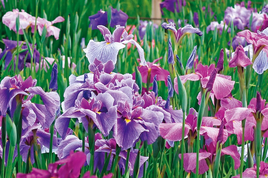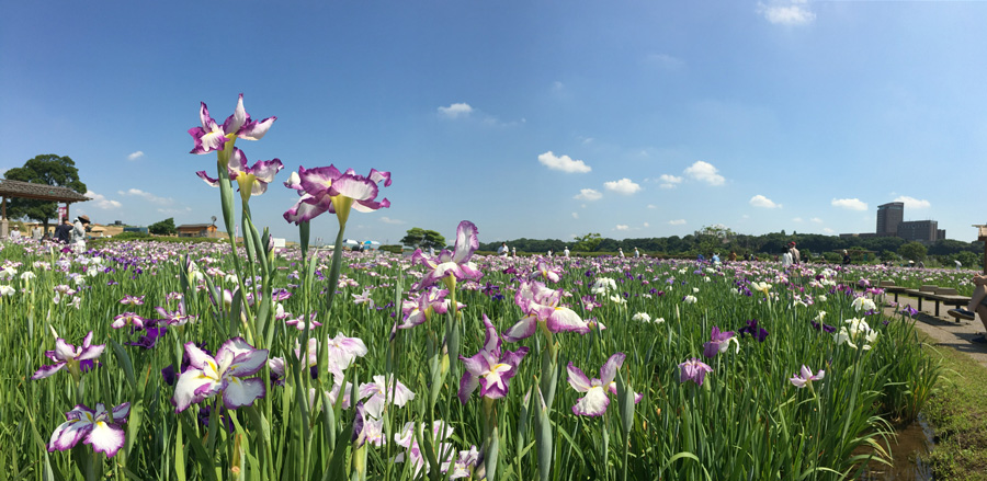 江戸名所の一つとして古くから知られており、約200種6,000株の花菖蒲を無料で鑑賞できます。見頃は6月上旬~6月中旬。花菖蒲が咲き誇る景観は歌川広重や鈴木春信らの錦絵にも描かれています。