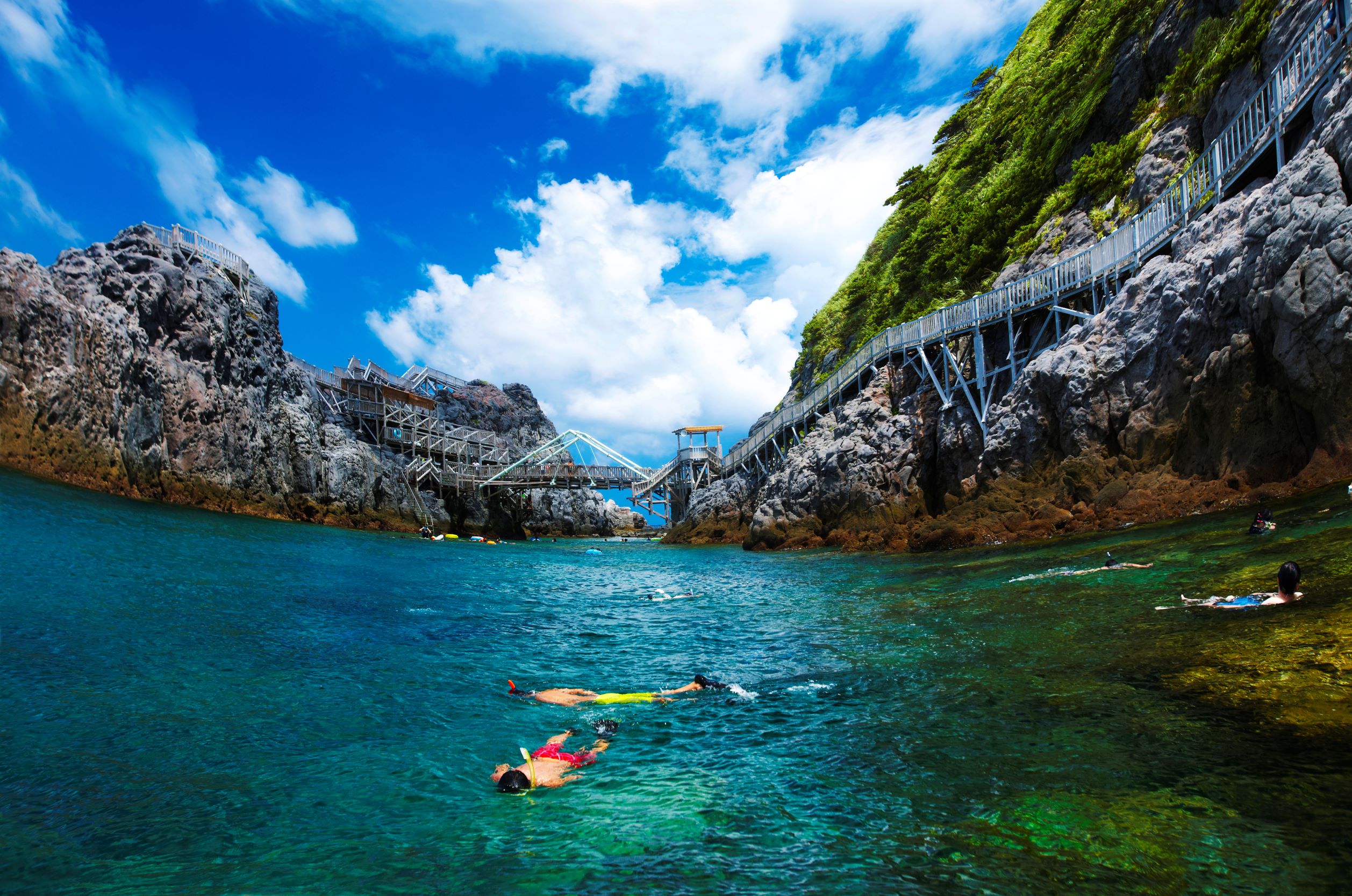 透明度抜群の海でシュノーケリングを楽しんでください。勇気を出して飛び込めば二人の仲が深まること間違いなし。