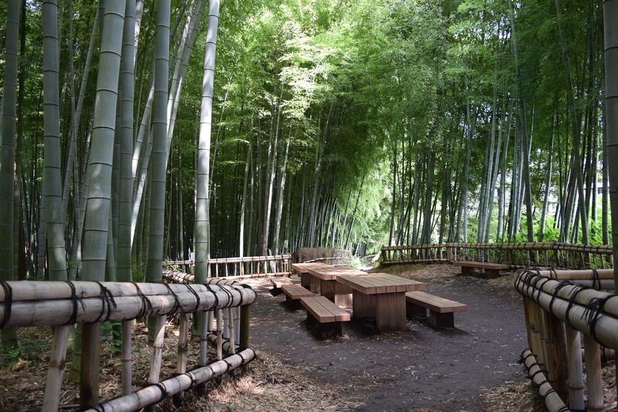 無数の孟宗竹に囲まれた園内は、遊歩道も整備され、いつも静寂に包まれています。雪が積もった風景もお薦めです。新東京百景の一つに選ばれています。また公園の一角からは湧水が流れ、東京の名湧水57選に選ばれています。
