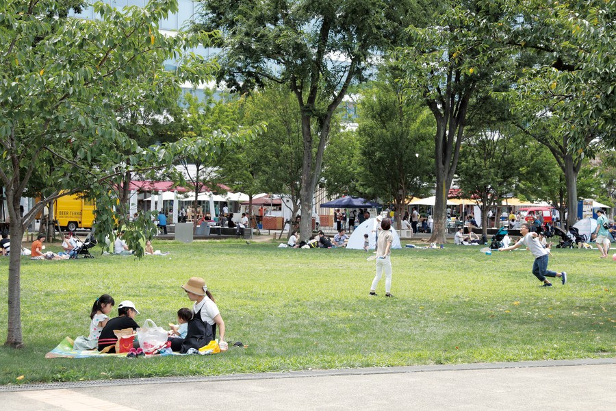 オフィスビルに囲まれながらも、木々が多く緑豊かな中野四季の森公園は、中野屈指の癒しスポット。天気が良い日には芝生でピクニックデートも楽しめます。週末には、グルメイベント、フリーマーケット、夏にはビアガーデンなど多様なイベントが開催されています。
