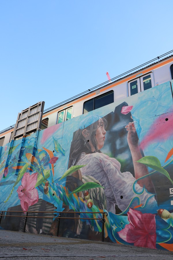 中野駅の北口を出てすぐ右手の壁に、巨大なアートが出現。世界的なアーティストwhole9が手がけたこの壁画は、中野の新しい待ち合わせスポットとしても大人気です。
