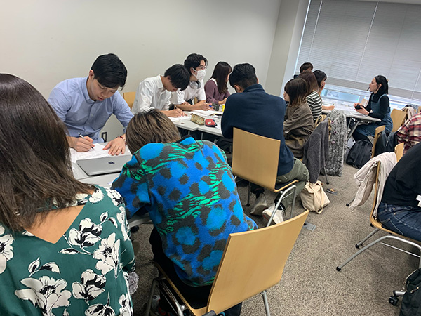 今回のセミナーに参加されたのは、キャリアデザインについて学んでいる学生の皆さんと一般参加の方(約25名)で、キャリアとライフデザインの関係を考えるという位置付けで実施されました。セミナーでは、ゲスト2名にご登壇いただき、仕事や結婚、子育てなど、様々な経験を聞きながら、多様な生き方の選択肢を知り、参加者自らがライフプランについて考える機会としていただきました。
